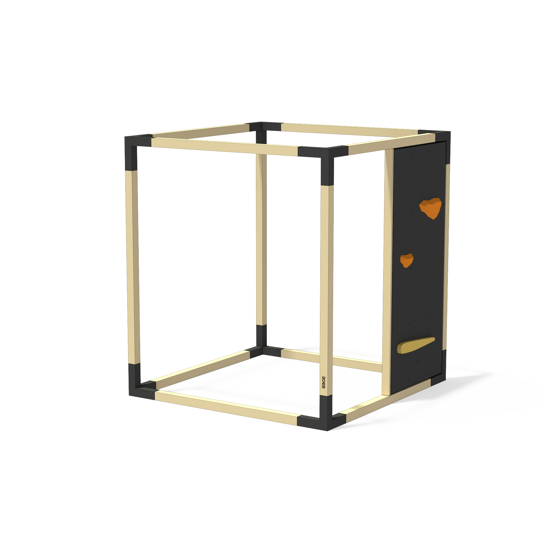 ruszt wykonany z drewna modrzewiowego, zabezpieczona nanomalowanym bezbarwnym olejem, dwustronna sklejka zewnętrzna pokryta farbą kredową, 3 uchwyty wspinaczkowych po jednej stronie