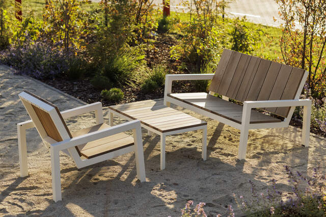 stalowa konstrukcja ocynkowana i malowana proszkowo, lite drewno z opcjonalną aplikacją oleju.