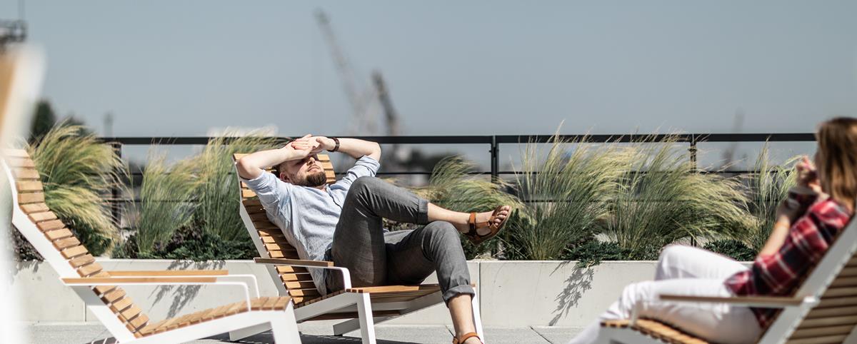 Nasze sześciany Leva, wraz z innymi produktami Egoé life, znalazły dla siebie miejsce na jednym z dachów stolicy Słowacji. Nasze meble tworzą tu miejsce do siedzenia na zewnątrz w bratysławskiej siedzibie firmy Lenovo.