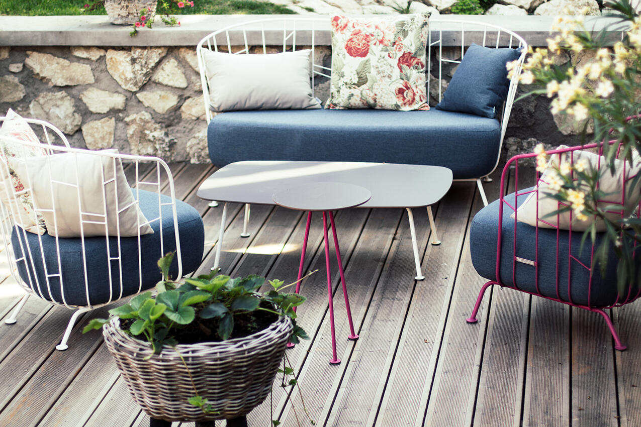 Znajduje się trzy metry od kościoła i każdym elementem komunikuje precyzyjnie - każdy detal ma znaczenie. Unikatowa estetyka ogródka, która bazuje na czystych kształtach i naturalnych materiałach jest teraz podkreślona produktami z naszej kolekcji Máj.