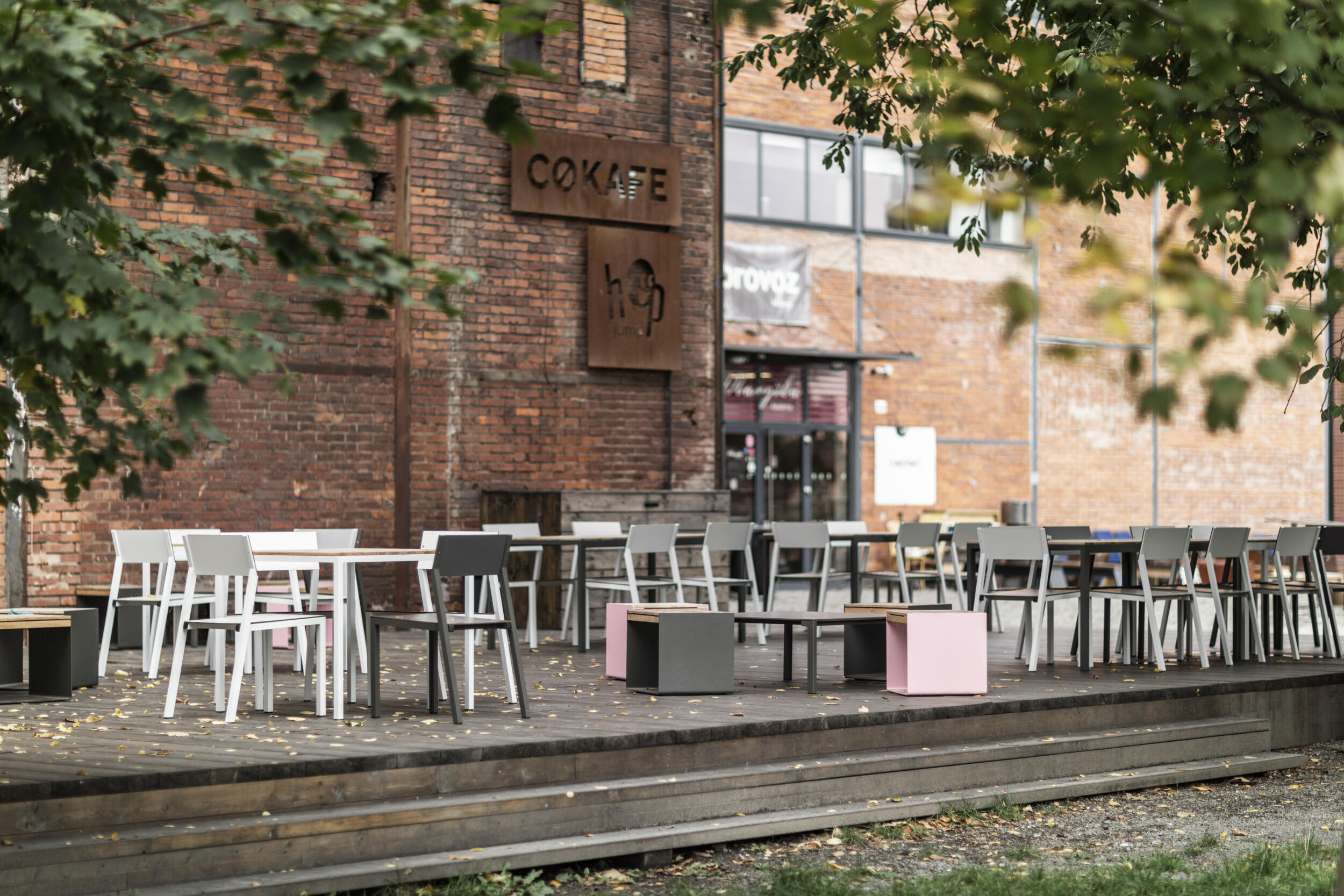 Pionierzy ostrawskiej kultury kawiarnianej zdecydowali się poszerzyć pole swojej działalności o kolejne miejsce, w jednej z najważniejszych czeskich lokalizacji typu brownfield – Dolní oblasti Vítkovice – który jest, między innymi, domem różnych projektów, takich jak Colours of Ostrava. Atmosferę industrialnych budynków i ich okolicy można chłonąć siedząc w otwartym ogródku tej kawiarni, która jest w całości wyposażona w meble Egoé.