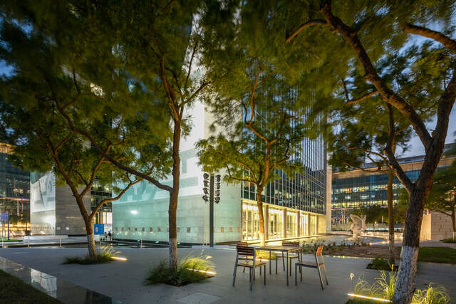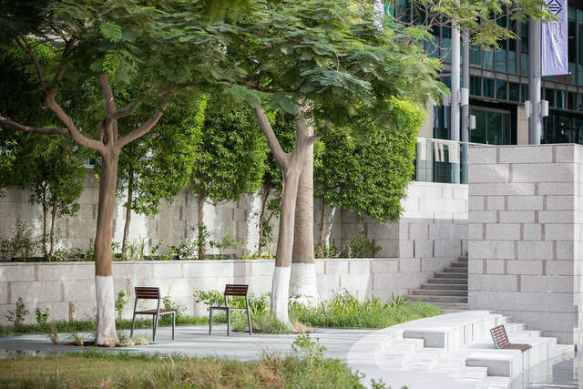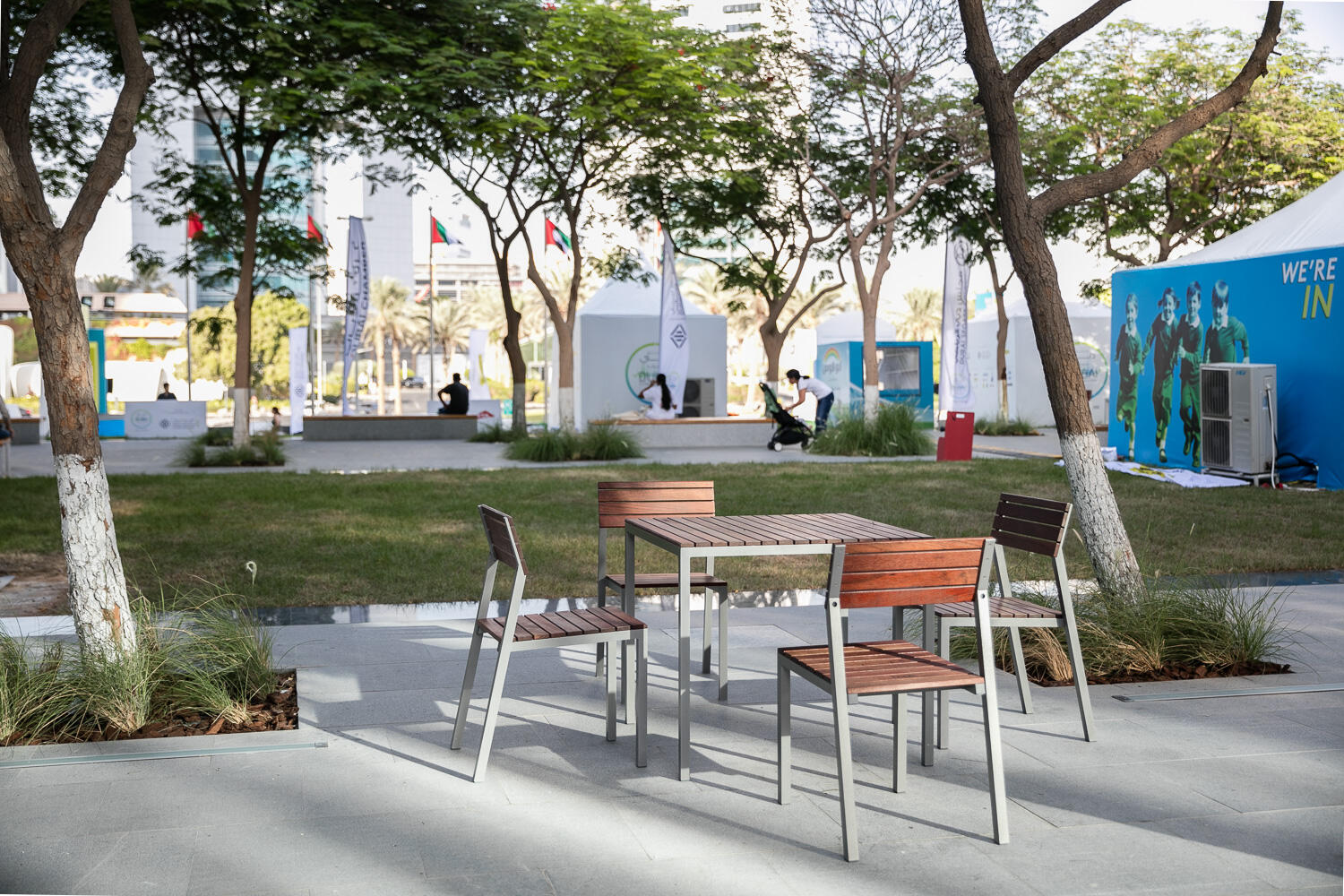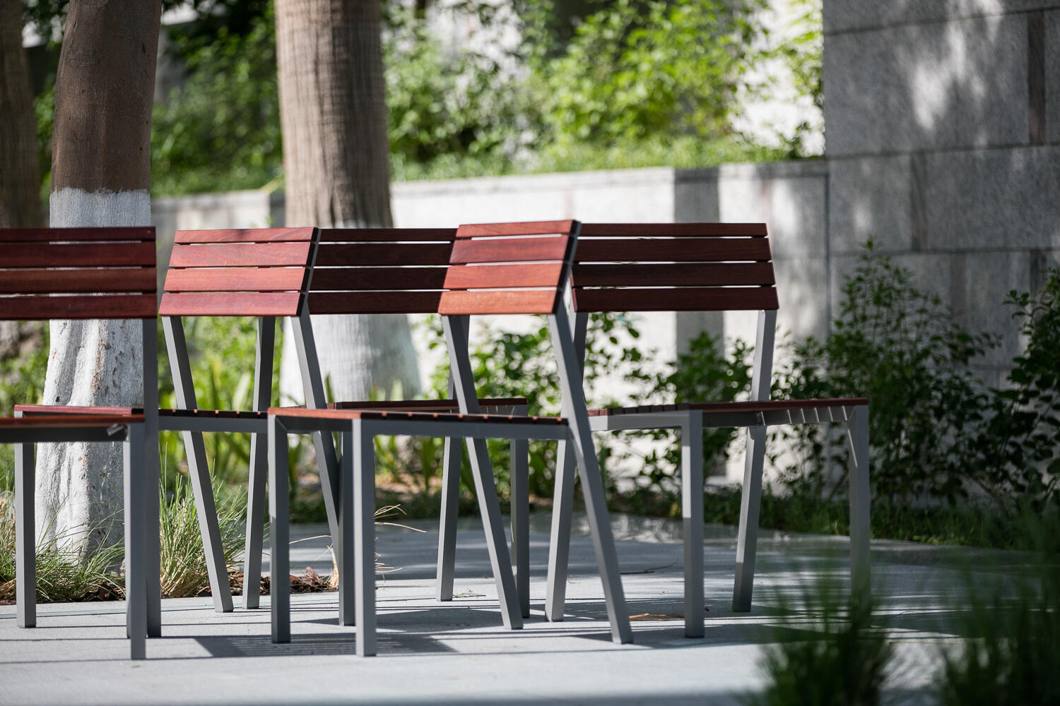 W tej finansowej Dolinie Krzemowej czuć zapach pieniędzy i jakości, czuć tutaj ścisły nadzór nad każdym szczegółem. Między hipernowoczesnymi budynkami znajdą się również liczne strefy zieleni przeznaczone do odpoczynku i nieformalnych spotkań. I te przestrzenie trzeba wyposażyć w elementy małej architektury, które spełnią wysokie wymogi dotyczące designu i wykonania. Na pewno nie wzbudzi zdziwienia fakt, że dostarczyliśmy tu czterdzieści krzeseł i pięć stołów naszej serii Cora, która w tej luksusowej przestrzeni radzi sobie równie dobrze, co w fabrycznej stołówce. Zamówienie prowadził z architektami i realizował nasz dystrybutor WT Burden