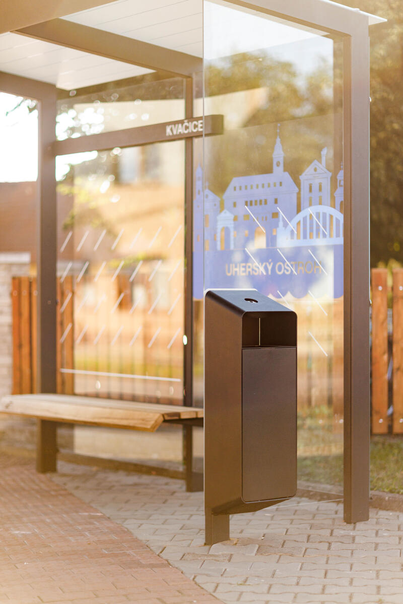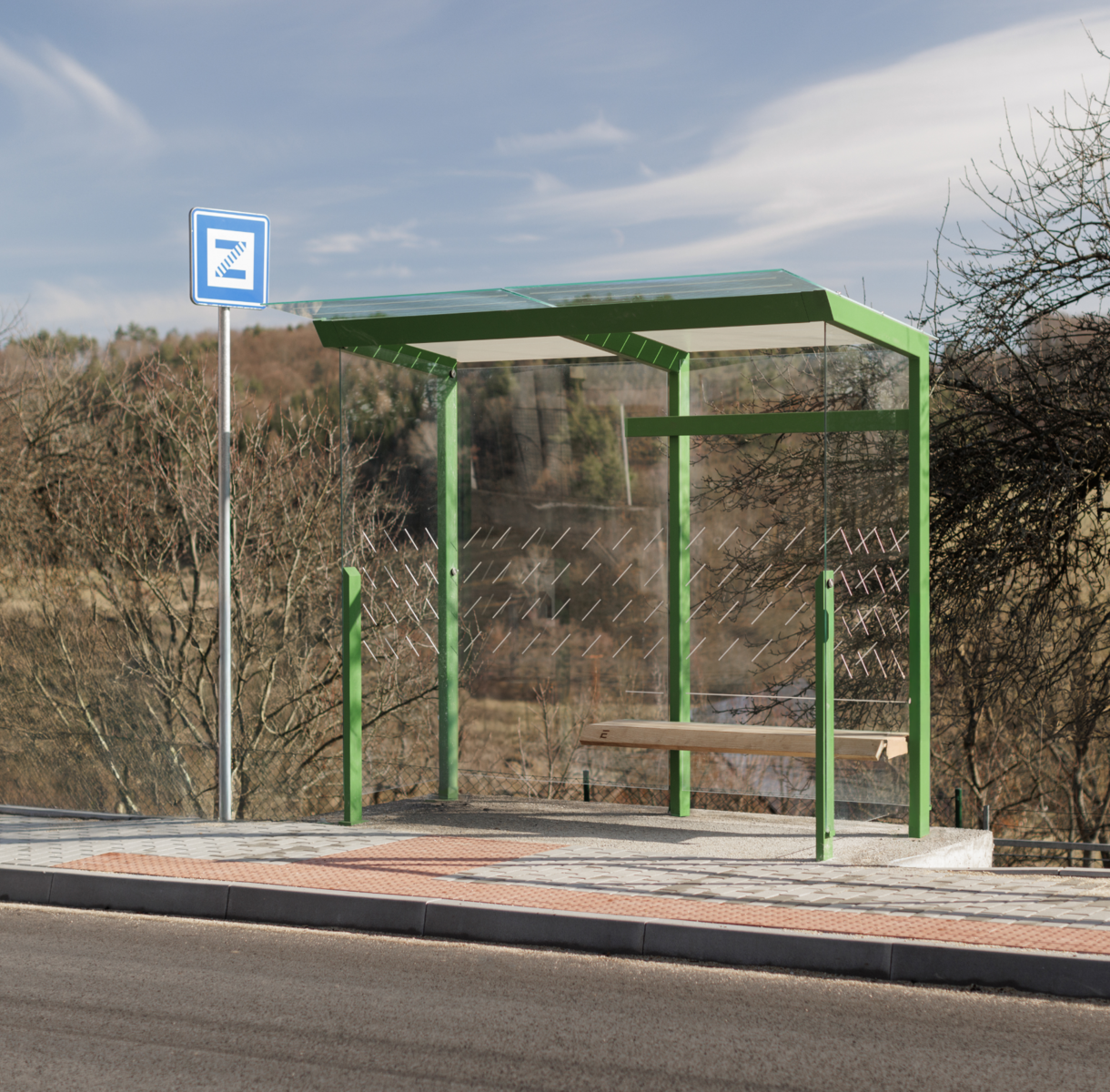 Wiaty przystankowe mogą być uzupełnione o dodatkowe wyposażenie: tablice rozkładowe, tablice informacyjne, tablicę z nazwą przystanku, oświetlenie lub gablotę CL.